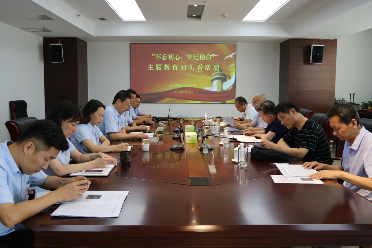 7月29日,“不忘初心、牢記使命”主題教育市國資委第五巡回指導組一行前來濟南靜態交通公司,開展“不忘初心、牢記使命”主題教育活動“回頭看”活動。