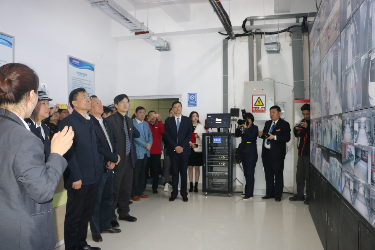 與會領導和嘉賓參觀停車場中控室。